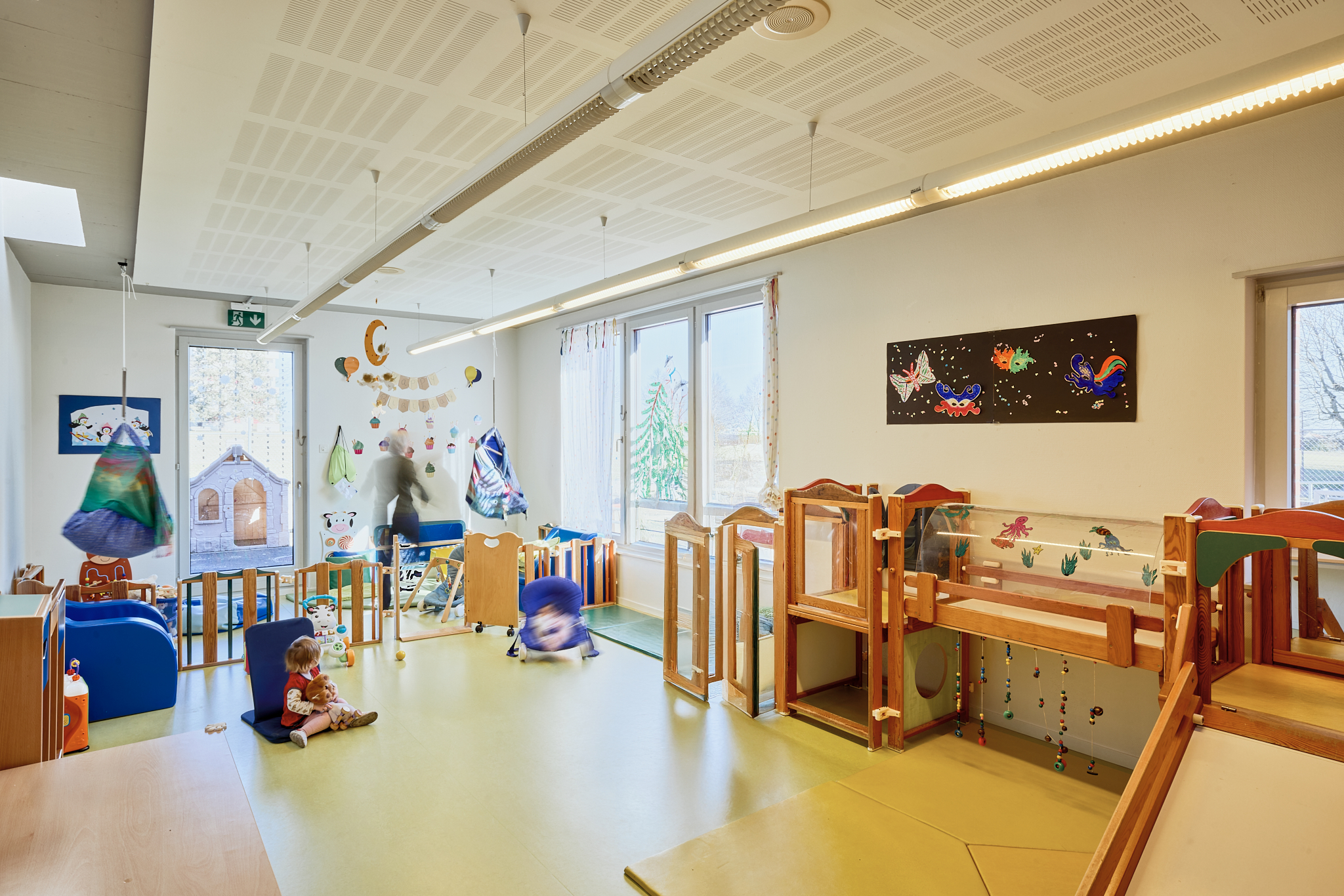 Présente sur la commune de Villars-sur-Glâne depuis plus de 40 ans, la crèche Les Dauphins joue un rôle essentiel dans l’accueil et l’accompagnement des jeunes enfants et de leurs familles. La structure peut accueillir jusqu’à 44 enfants, répartis en trois groupes d’âge afin de garantir un accompagnement adapté à chaque étape du développement :